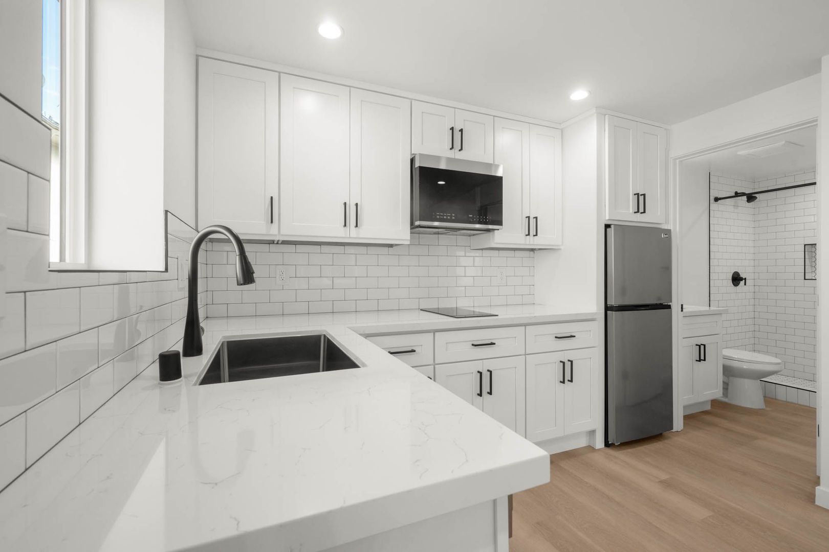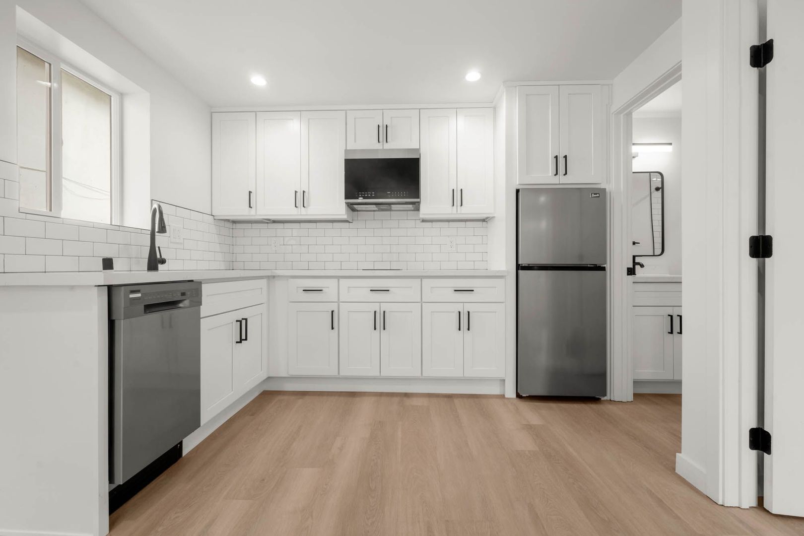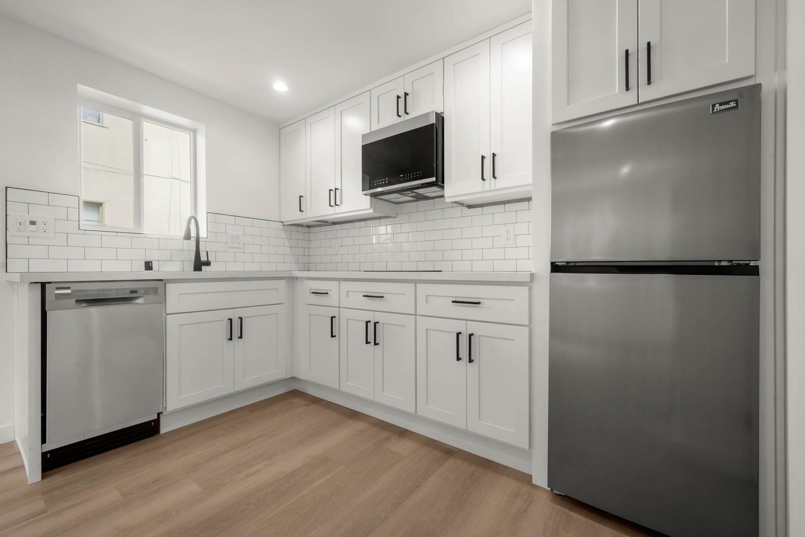 • Appliances Included: Stainless steel Diswasher, Refrigerator, and Microwave.